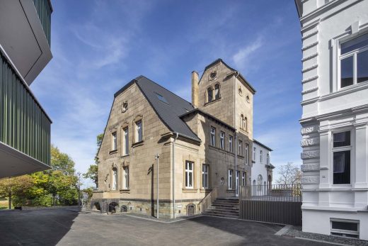 Im Zuge des Neubaus von 2 Gebäuden für studentisches Wohnen auf dem Campus-Areal wurden die beiden in die Jahre gekommenen Villen saniert und einer neuen Nutzung als Bürogebäude zugeführt. Der Umbau der leerstehenden Villa Ingenohl zum Stiftungssitz der gemeinnützigen Stiftung und der statisch stark beeinträchtigten Villa Heckmann zum Bürogebäude mit Begegnungsflächen und Kantine für Studenten schafft ein Ensemble für ein vitales Campusleben und verbindet die Bestandsbauten mittels einer neuen Freitreppe mit den beiden neu geschaffenen Gebäuden „Romeo und Julia“.