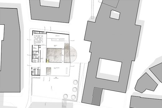 Durch den Bau des Jüdischen Museums, dessen Gebäudekubatur und Proportion erhält der Stadtraum eine klare Fassung und das Wallraf-Richartz-Museum ein entsprechendes „vis-á-vis“. Ein der städtischen Situation angemessener Vorbereich formt einen gefassten Platz zwischen diesen beiden Museen aus. Das neue Jüdische Museum reiht sich in die Abfolge der kulturellen Bauten der „via culturalis“, in direkter Nachbarschaft zum Wallraf-Richartz-Museum und dem Gürzenich, ein. Die Realisierung der Archäologischen Zone und des Jüdischen Museums kann flexibel und unabhängig voneinander erfolgen.