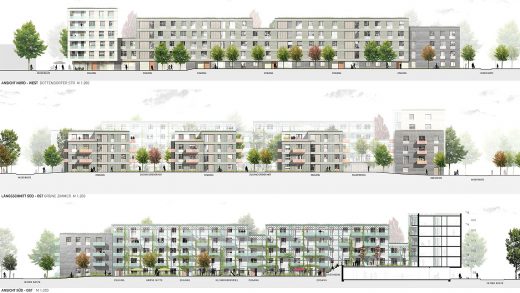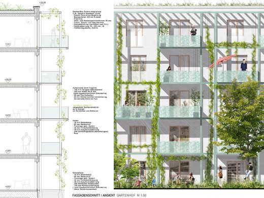 Die städtebaulichen Leitlinien ergeben sich aus dem Siegerentwurf von GBP Architekten mit hola landschaftsarchitektur des städtebaulichen Wettbewerbs im Jahr 2020. Vor dem Hintergrund der hohen Baupreise und Finanzierungszinsen geht dieser Wettbewerb neue Wege, um bezahlbare Wohnungen mit hoher architektonischer Qualität zu planen; so soll das Haus mit vorgefertigten Bauteilen rationell realisiert werden.