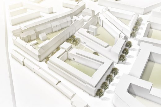 Die Bebauung und städtebauliche Ordnung der Gründerzeit mit ihrer Abfolge an öffentlichen Wegen und Plätzen im Gegensatz zu den privaten Blockinnenbereichen erweist sich als robuste Struktur für vielfältiges städtisches Leben in Köln-Kalk und dient als Leitbild für den Entwurf. Auf dieser Basis wird die städtebauliche Struktur aufgenommen und weiter entwickelt, indem im Norden die neue Bebauung das vorhandene Blockfragment schließt und im Süden durch eine weitere Blockrandbebauung arrondiert wird.
