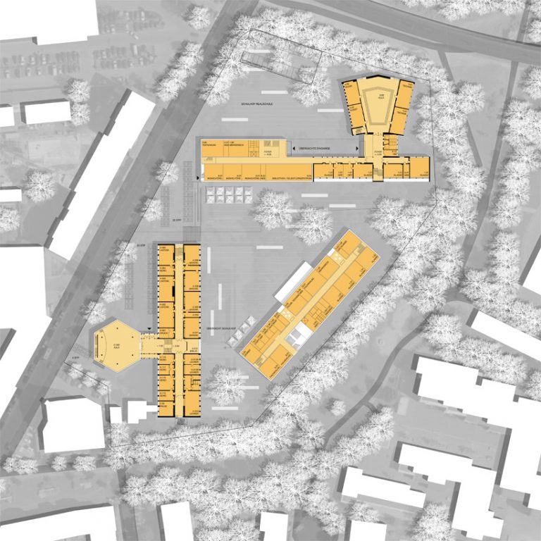 Bauvolumen: Realschule 5.800m² NF + Berufsschule 3.100m² NF